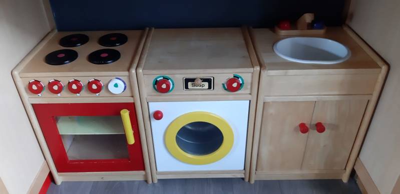 De speelruimte is voorzien van o.a. een keukentje, blokken om mee te bouwen en ballen.
